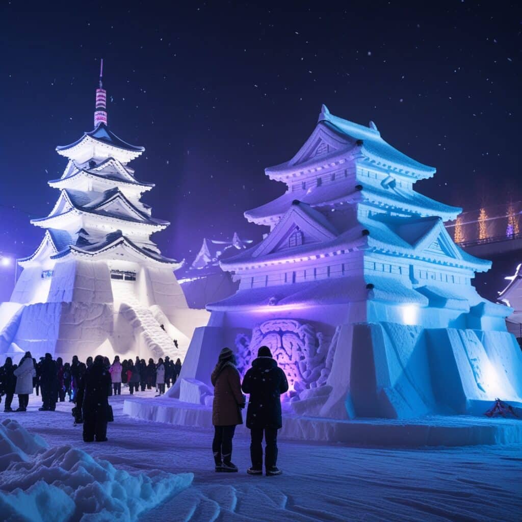 Di malam hari, festival menjadi semakin memukau ketika patung-patung ini dihiasi lampu warna-warni (“Yuki Akari”), menciptakan pemandangan seperti negeri dongeng. Suasana festival juga semakin meriah dengan pertunjukan musik, kompetisi pembuatan patung internasional, dan tentu saja, kuliner musim dingin Hokkaido yang lezat.