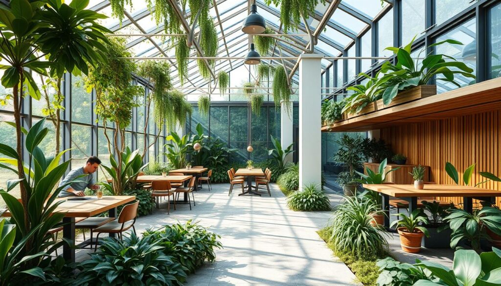 Gambar Greenhouse Coworking di Kuningan dengan konsep ramah lingkungan dan desain interior yang hijau.